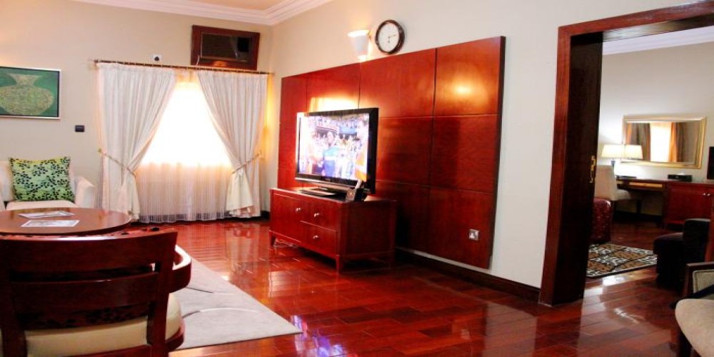 This is a two bed room APARTMENT with a kitchenett. Ideal for family holiday. The Two Rooms and parlour in all measures 100Sq Mtr. The Masters of the room has a Jacuzzi and shower just as it is in the Ambassadorial Suite.